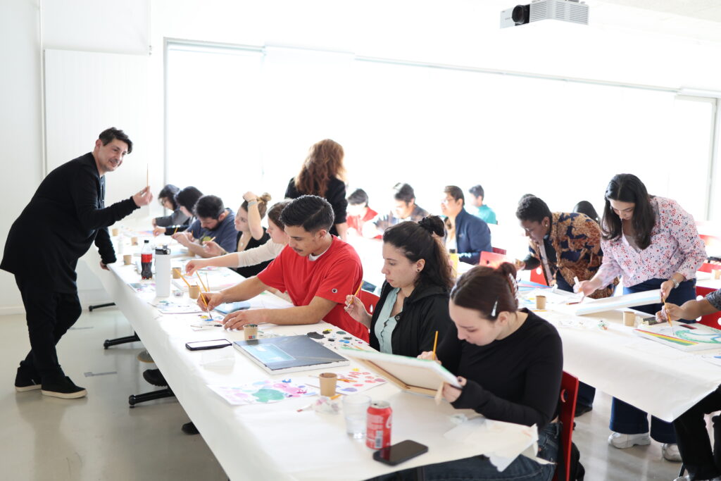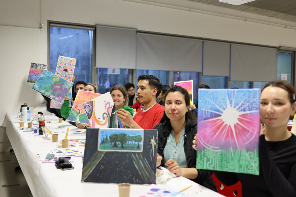 Les étudiants ont participé à un atelier où la science a rencontré l’art, animé par deux artistes internationaux, Maria Andrade Andrade et Alexandre Beridze, dont le travail s’inspire de la nature, des cultures et des sciences. À travers la peinture, chacun a pu exprimer son projet de recherche, son pays d’origine ou son histoire personnelle, révélant toute la richesse et la diversité de la promotion.